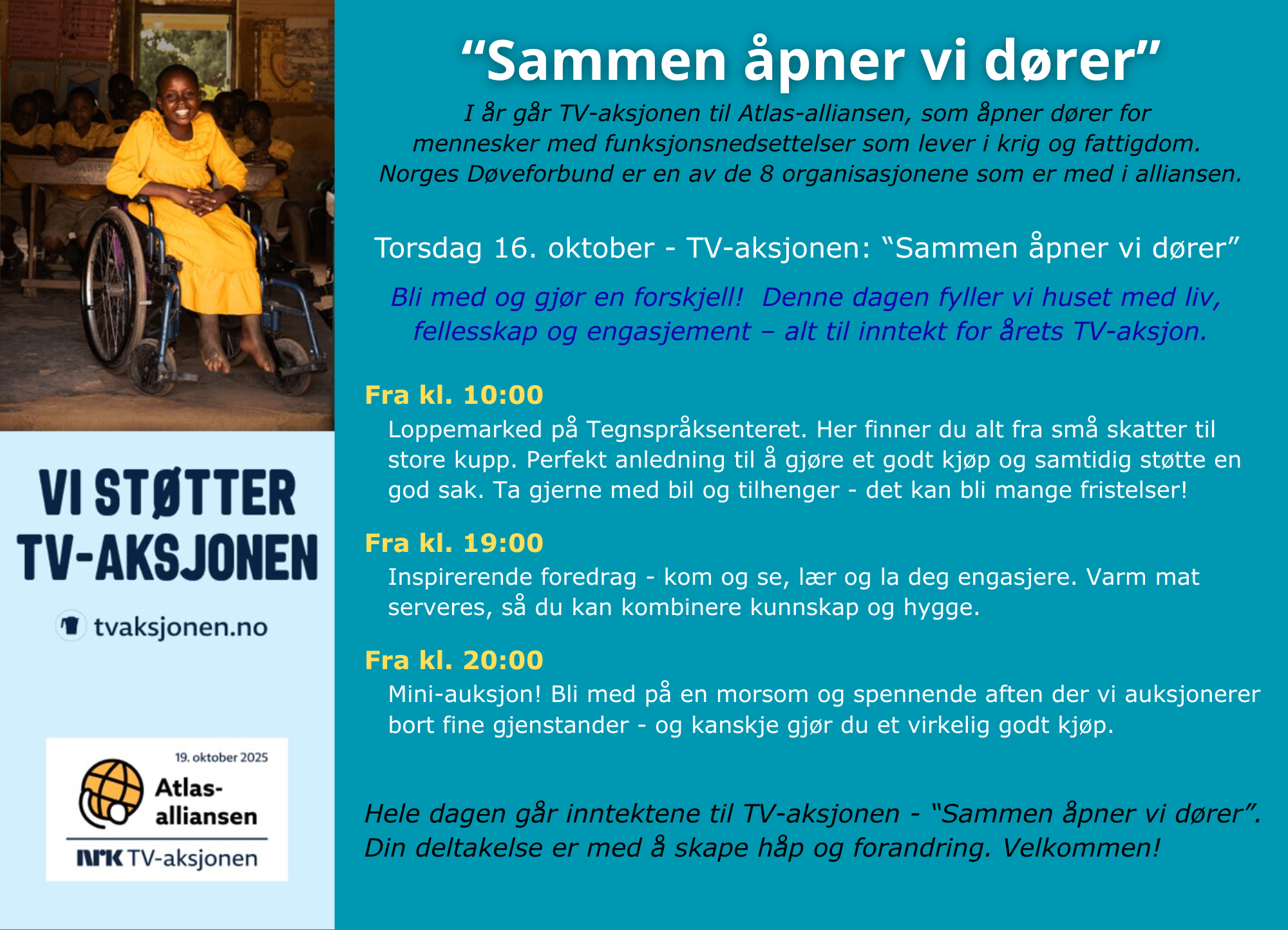 TV-aksjonen «Sammen åpner vi dører» – torsdag 16. oktober i Tegnspråksenteret.